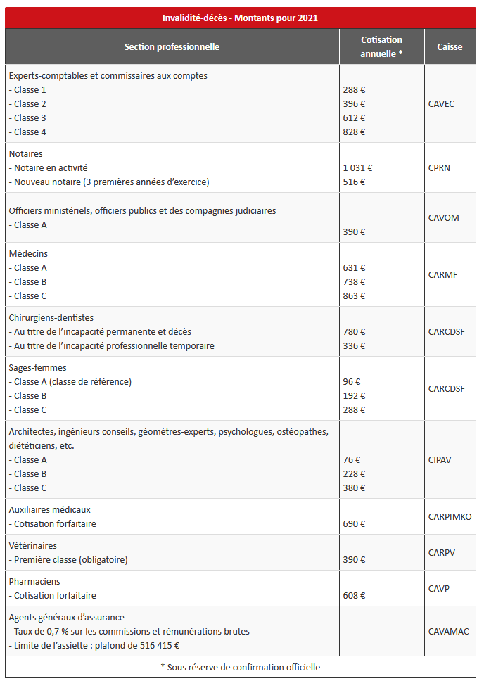Chaque année, les professionnels libéraux doivent verser, à la section professionnelle dont ils relèvent, des cotisations de retraite complémentaire et d’invalidité-décès dont le montant diffère pour chaque section. Voici les montants des cotisations communiqués par ces sections.