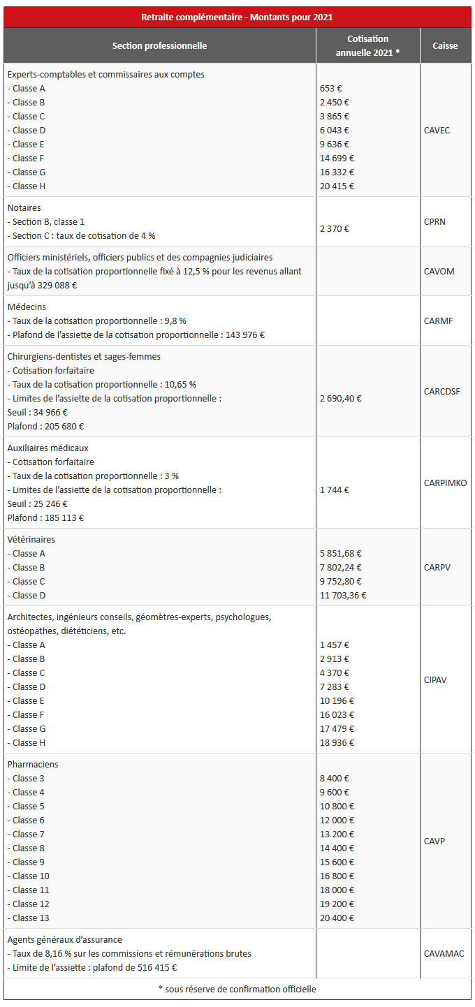 Les montants 2021 des cotisations de retraite complémentaire et d’invalidité-décès dues par les professionnels libéraux sont désormais connus.